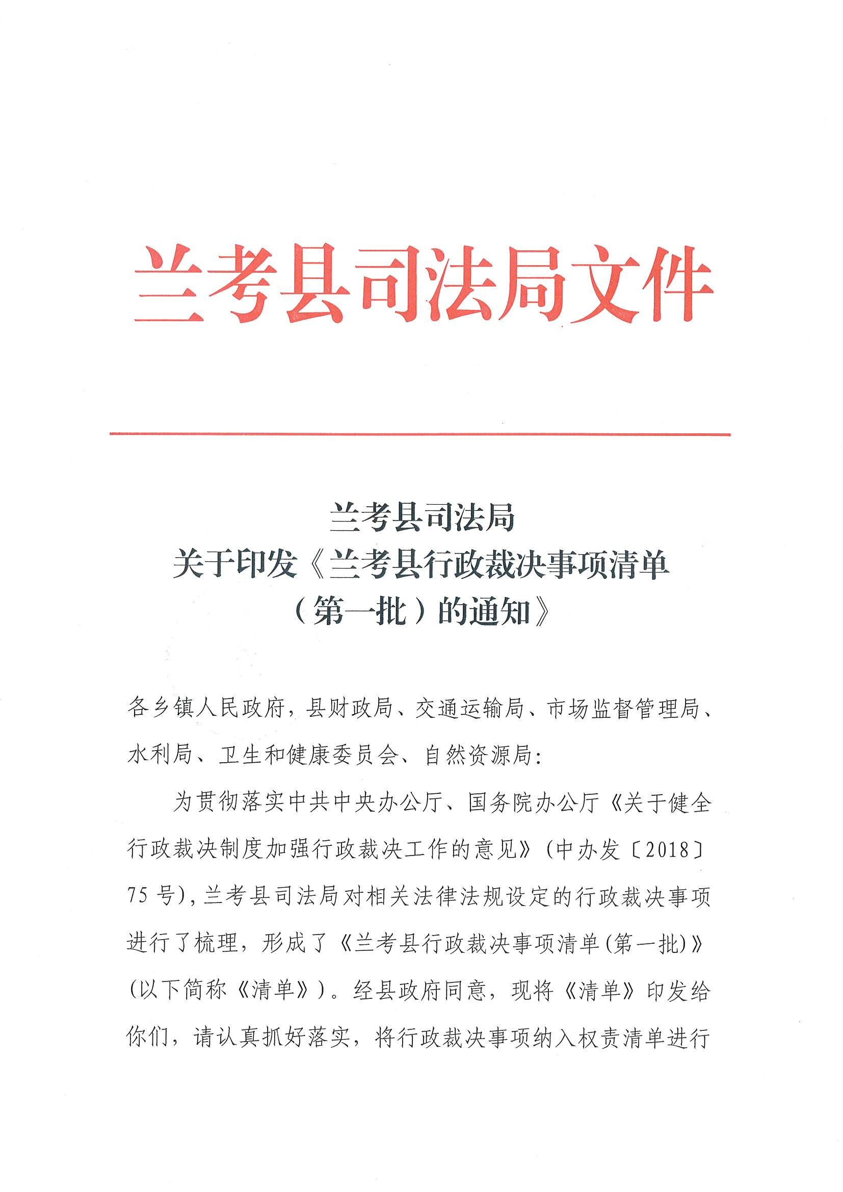 华体会登录入口司法局关于印发《华体会登录入口行政裁决事项清单(第一批)的通知》